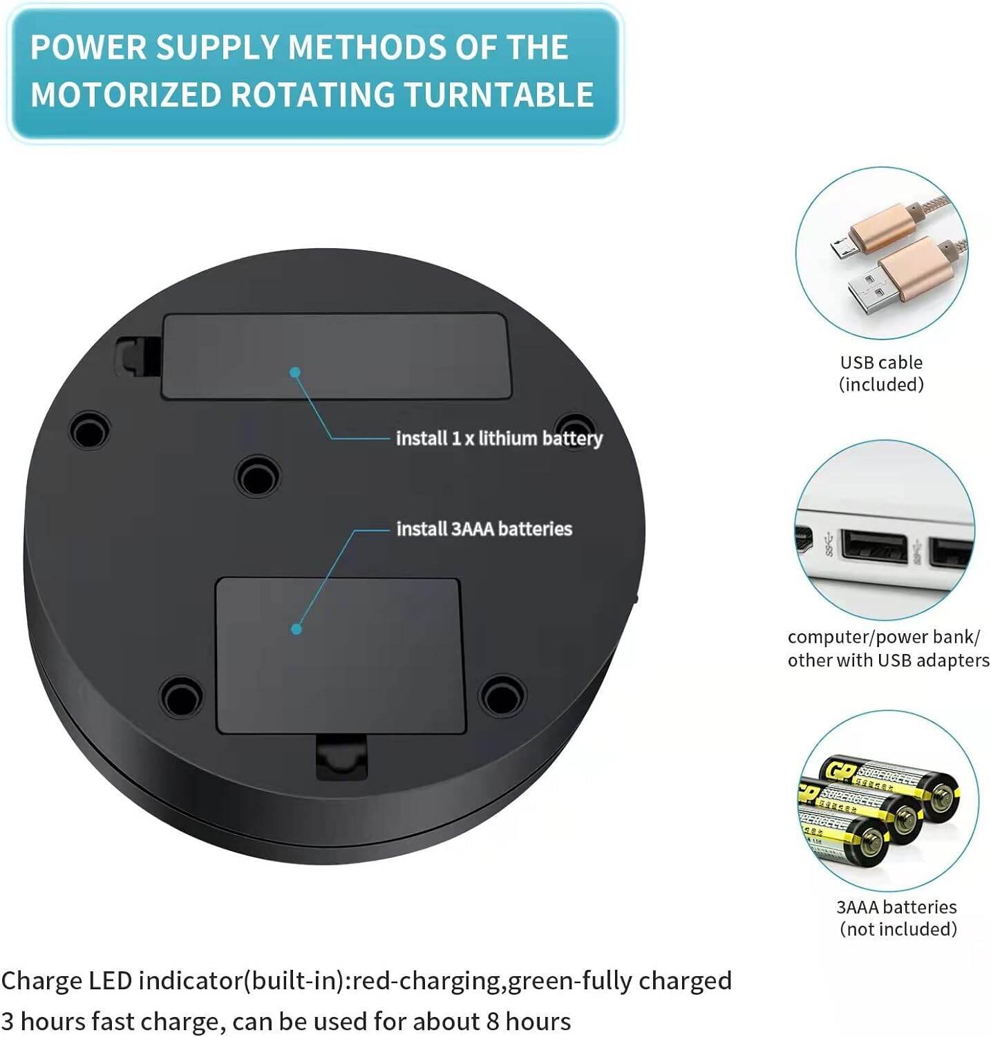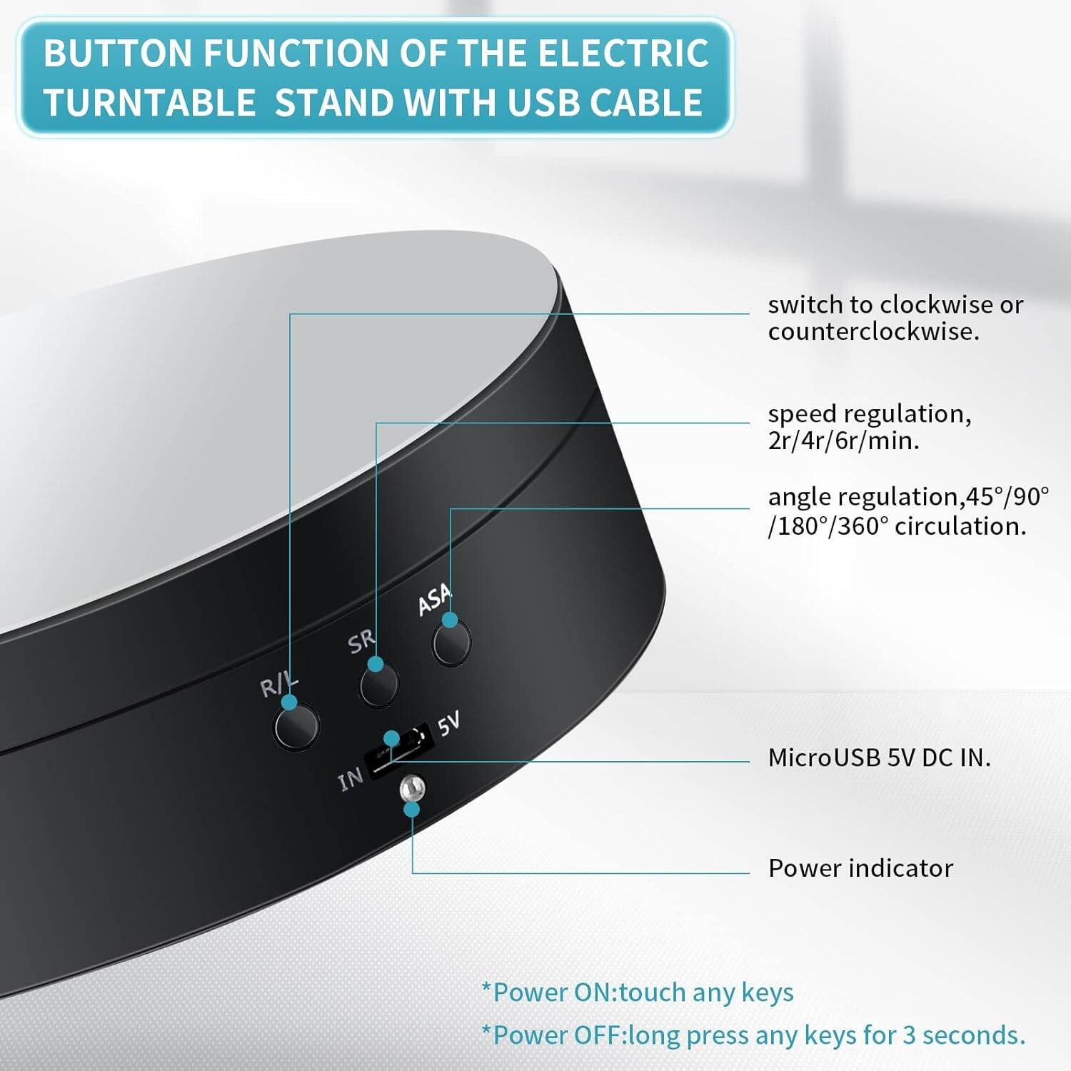360 Degree Electric Rotating Display Stand Turntable, 3 Speeds with USB Cable, Suitable for Photography, Watches, 3D Models