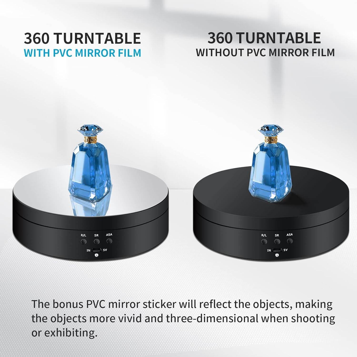 Display Stand for Photography Products Display Spinner Display Turntables Motorized Rotating Display 360 Degree Turntable Display Stand Battery Turntable for Photography Products Shows, Jewelry, Watch, 3D Models, Cake,Battery/USB Power Supply(Black, With PVC Mirror Sticker)