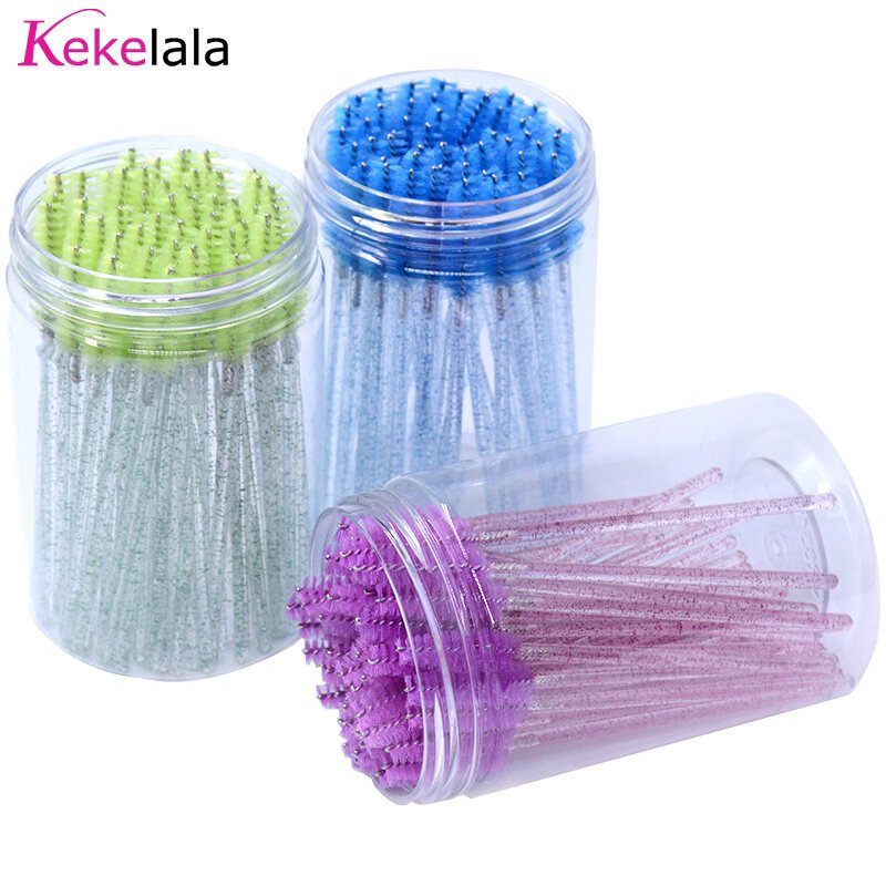 50Pcs/Bottle Eyelash Extension Brushes With Container Eyebrow Eye Lash Mascara Wands Spoolies In Case Wholesale